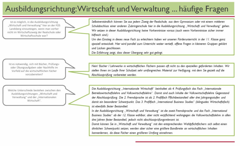 Die in dieser Ausbildungsrichtung vermittelten Kenntnisse im wirtschaftlichen, kaufmännischen und rechtlichen Bereich sind die ideale Voraussetzung für ein wirtschaftswissenschaftliches Studium an einer Hochschule. Der Begriff Verwaltung in der Bezeichnung der Fachrichtung weist darauf hin, dass die Absolventen der zwölften Klasse mit der hier erworbenen “Allgemeinen Fachhochschulreife” hinsichtlich staatlicher und öffentlicher Verwaltungsberufe die gleiche Berechtigung erworben haben wie die Inhaber der “Allgemeinen Hochschulreife”. Dies bedeutet, dass sie für den gehobenen Dienst den Bewerbern mit “Allgemeiner Hochschulreife” gleichgestellt sind.