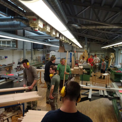 Der Fachbereich Holztechnik ist die „Kreativabteilung“ der Berufsschule und begleitet die Schülerinnen und Schüler bei deren Ausbildung zur Schreinerin/zum Schreiner. Basis ist hierbei das Berufsgrundschuljahr Holztechnik, ein vollzeitschulisches Angebot, das als erstes Ausbildungsjahr angerechnet wird. Hier werden die theoretischen, vor allem aber auch die handwerklichen Grundlagen für eine erfolgreiche „Schreinerkarriere“ gelegt. Neben der Grundlagenvermittlung ist auch die Förderung der Kreativität ein Schwerpunkt des Berufsgrundschuljahres: erste Werkstücke werden eigenständig entworfen, diskutiert, geplant und letztlich auch gefertigt. Dem BGJ schließen sich zwei weitere Ausbildungsjahre im dualen System an (Schule und Betrieb), die mit der Gesellenprüfung ihren Abschluss finden. Im Fokus unserer Arbeit steht die individuelle Entwicklung aller Schülerinnen und Schüler, denen wir, auch in enger Zusammenarbeit mit den Kolleginnen der Jugendsozialarbeit an der Berufsschule und dem Schulpsychologen, eine erfolgreiche und glückliche Ausbildung ermöglichen und berufliche Perspektiven eröffnen möchten.