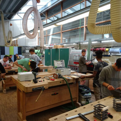 In der „Kreativabteilung“ der Berufsschule erlernen die Schülerinnen und Schüler im Berufsgrundjahr die handwerklichen Grundlagen für eine erfolgreiche Schreinerkarriere. Darauf folgen zwei weitere Ausbildungsjahre im dualen System.