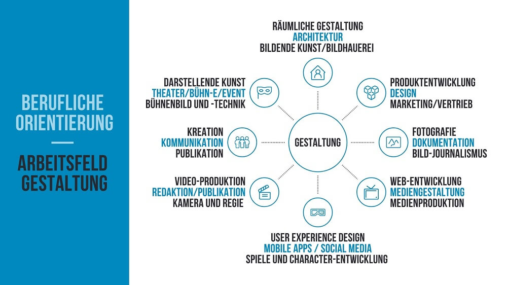 Die im Gestaltungszweig beheimatete Schülerschaft setzt sich mit einer Vielzahl von Wahrnehmungsanforderungen und Darstellungstechniken auseinander. In diesem Kreativitätstraining spielt die eigene Inspiration, die sinnliche Wahrnehmung der Wirklichkeit und der Zufall im Erleben als Ideenlieferanten eine wesentliche Rolle. Die Gestalterinnen und Gestalter werden in zwei Jahren Fachunterricht und fachpraktischer Ausbildung darauf vorbereitet, sich an einer Hochschule für Angewandte Wissenschaften zu bewerben. Wer noch die 13. Klasse besucht, kann mit Erreichen der Allgemeinen Hochschulreife die Studienangebote aller Hochschulen in Anspruch nehmen. In Seminar- und Projektarbeiten wird zum Beispiel in Praxis und Theorie auf das wissenschaftliche und interdisziplinäre Arbeiten an Hochschulen und Akademien vorbereitet.