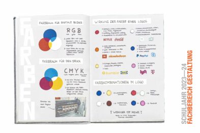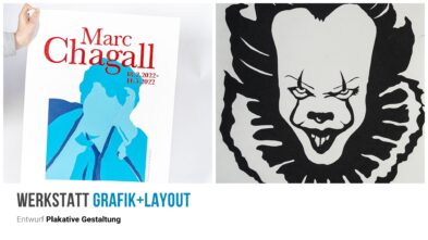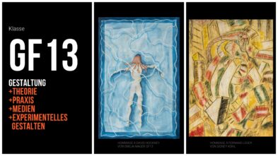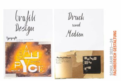Übungen in TYPOGRAFIE und KALLIGRAFIE, der Umgang mit Schrift und HANDSCHRIFT sowie experimentelle Gestaltungsübungen legen die Grundlagen für das Arbeiten in den Bereichen Layout und Konzeption von Medien: BÜCHER, ZEITUNGEN, ZEITSCHRIFTEN, WEBSITES, aber auch FILM, VIDEO und ANIMATION, also zeitbasierte Medien und deren Wirkungsweise, werden am Fallbeispiel ausprobiert und vertieft. In der 13. Klasse stehen komplexere Projekte wie BRANDING „CROSS MEDIA“ mit Logo-Entwicklung und Anwendungen bis hin zur Animation von Figuren oder der Konzeption von STORYBOARDS für KURZFILME.