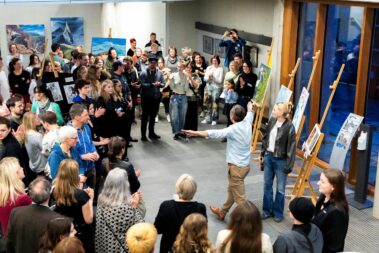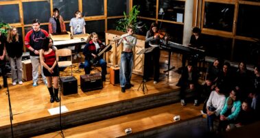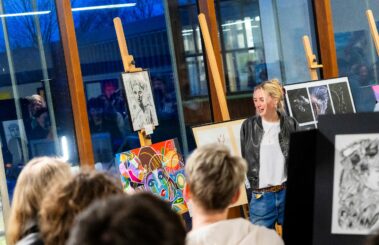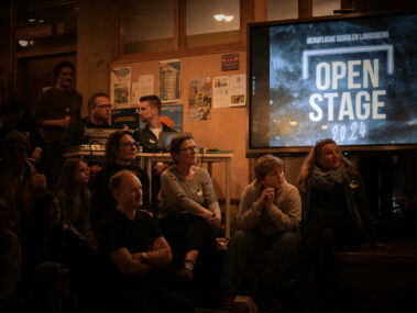 Die zweite Auflage der Open-Stage an den Beruflichen Schulen Landsberg hat, wie schon im Vorjahr, jede Menge positive Vibes produziert. Lehrer, Eltern und vor allem Schüler unterhielten die sehr gut besuchte Aula bestens mit einer Vielzahl toller Einlagen. Es ging los mit einer Vernissage inklusive anschließender amerikanischer Versteigerung einiger Kunstwerke. Frau Weißenbach spendete ihren Erlös für den guten Zweck. Das Foyer im D-Bau war der ideale Ausstellungsraum dafür.