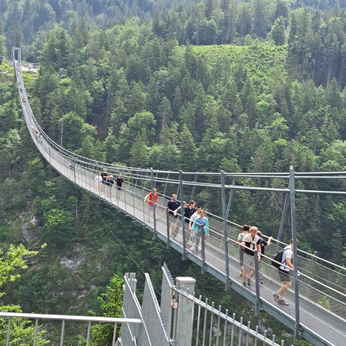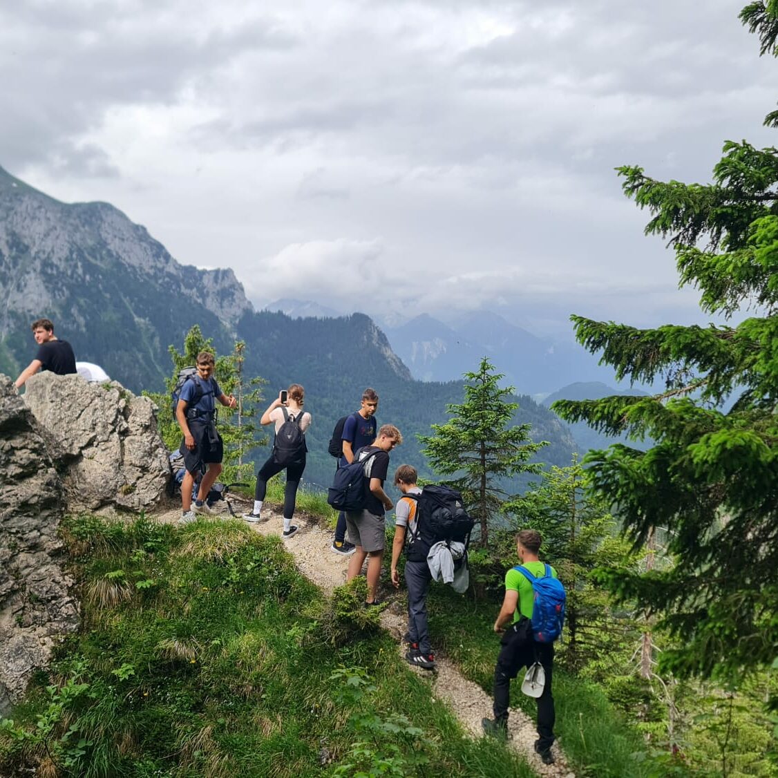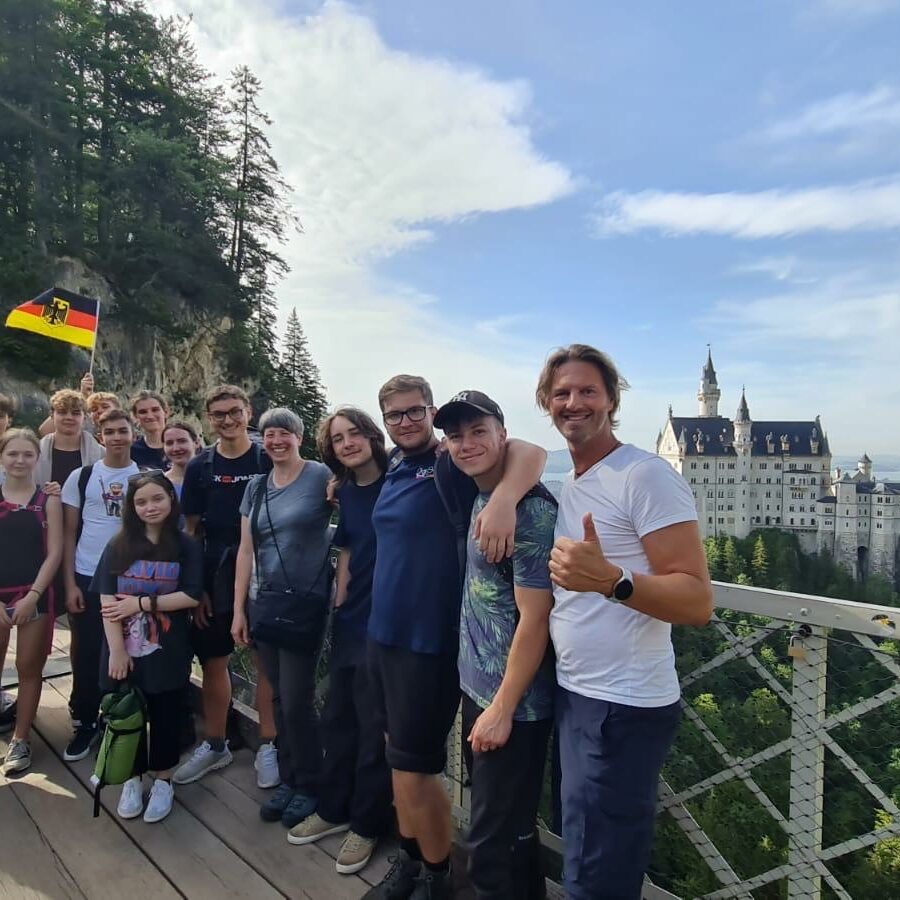 Nach einer 15-stündigen Reise kamen sie am Samstag, den 15. Juni, in der Früh am Kauferinger Bahnhof an und wurden von ihren Austauschpartnern in Empfang genommen. Das Wochenende verbrachten sie in ihren Gastfamilien, bevor dann ein abwechslungsreiches Programm für die gesamte Truppe startete. Am Montag ging es nach München (Nymphenburg und BIOTOPIA Lab im Botanischen Garten und natürlich Münchner Biergartenflair), am Dienstag durften die Gäste den Unterrichtsalltag ihrer deutschen Austauschpartner an der FOS erleben, am Mittwoch war der Startschuss für eine gemeinsame Projektarbeit, die im September in der Slowakei fortgeführt wird. Das Highlight war dann eine Zweitagestour nach Reutte (Highline 179), zum Alpsee, nach Neuschwanstein und nach einem Abstecher zur Marienbrücke zur Fritz-Putz-Hütte, einer Selbstversorgerhütte gleich an der Bleckenau. Einige badeten noch in der eiskalten Pöllath, während in der Küche schon die Vorbereitungen fürs Abendessen liefen. Im gemütlichen Gastraum und später am Lagerfeuer war die Stimmung bis tief in die Nacht blendend – und das trotz oder gerade weil auf der Hütte kein Internetempfang ist. Nach dem Frühstück erklomm ein Teil der Gruppe den Brandnerschrofen, während der Rest entspannt gen Füssen wanderte. Wem das noch nicht reichte, der ging später auf die Landsberger Wiesn.