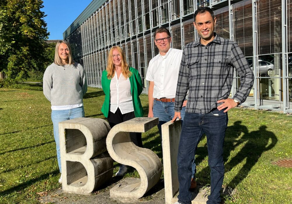 Seminar 2025/2026 (September): v.l. Susanne Stich, Antonia Linsmeier, Seminarlehrer Florian Jehle, Nassim Mebarki