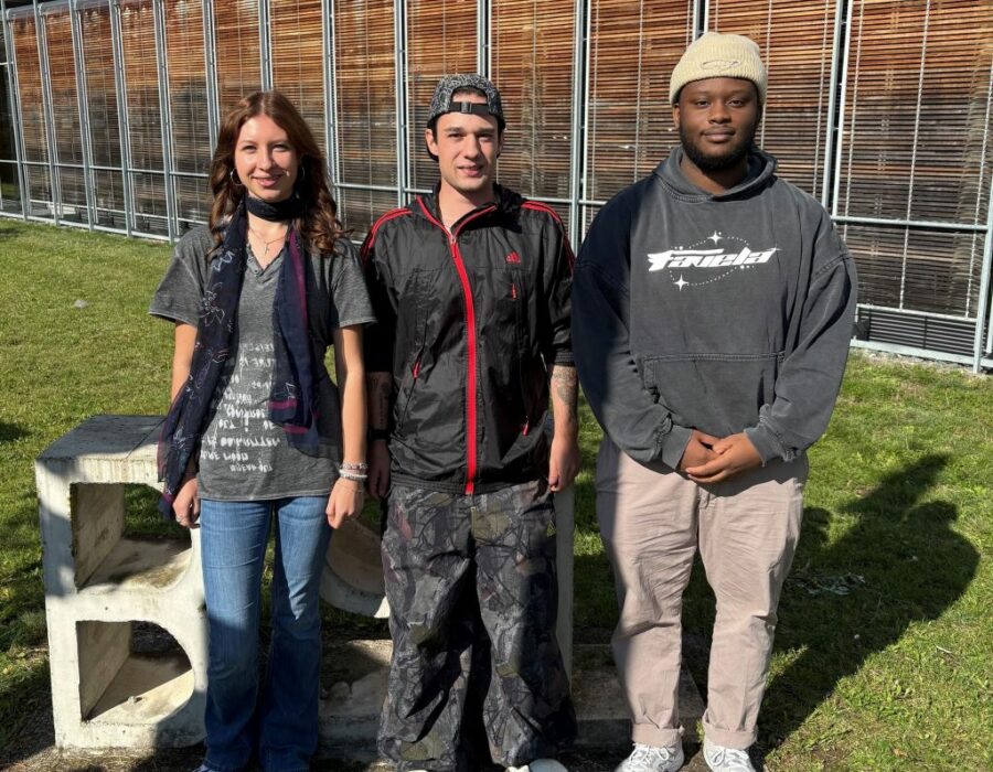 FOS: (v.l.n.r.) Emma Premer (2. Sprecherin, SF13b), Alexis Axiomakaro (Stellvertreter, SF12a) und Benedict Poth (1. Sprecher FOS, WF13)